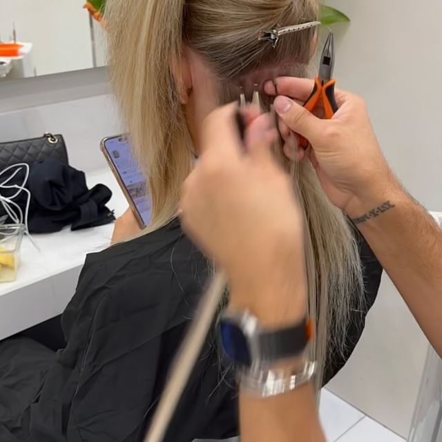 The Extensionist provides a range of luxury, custom tailored hair extensions, using only the very finest, hand-picked Slavic natural human virgin hair and European natural hair, available in 30+ colours and from 14'' to 30'' inches. We also offer one of the broadest selection of application methods in London including our most popular ones which are Micro rings hair extensions and Tape hair extensions.